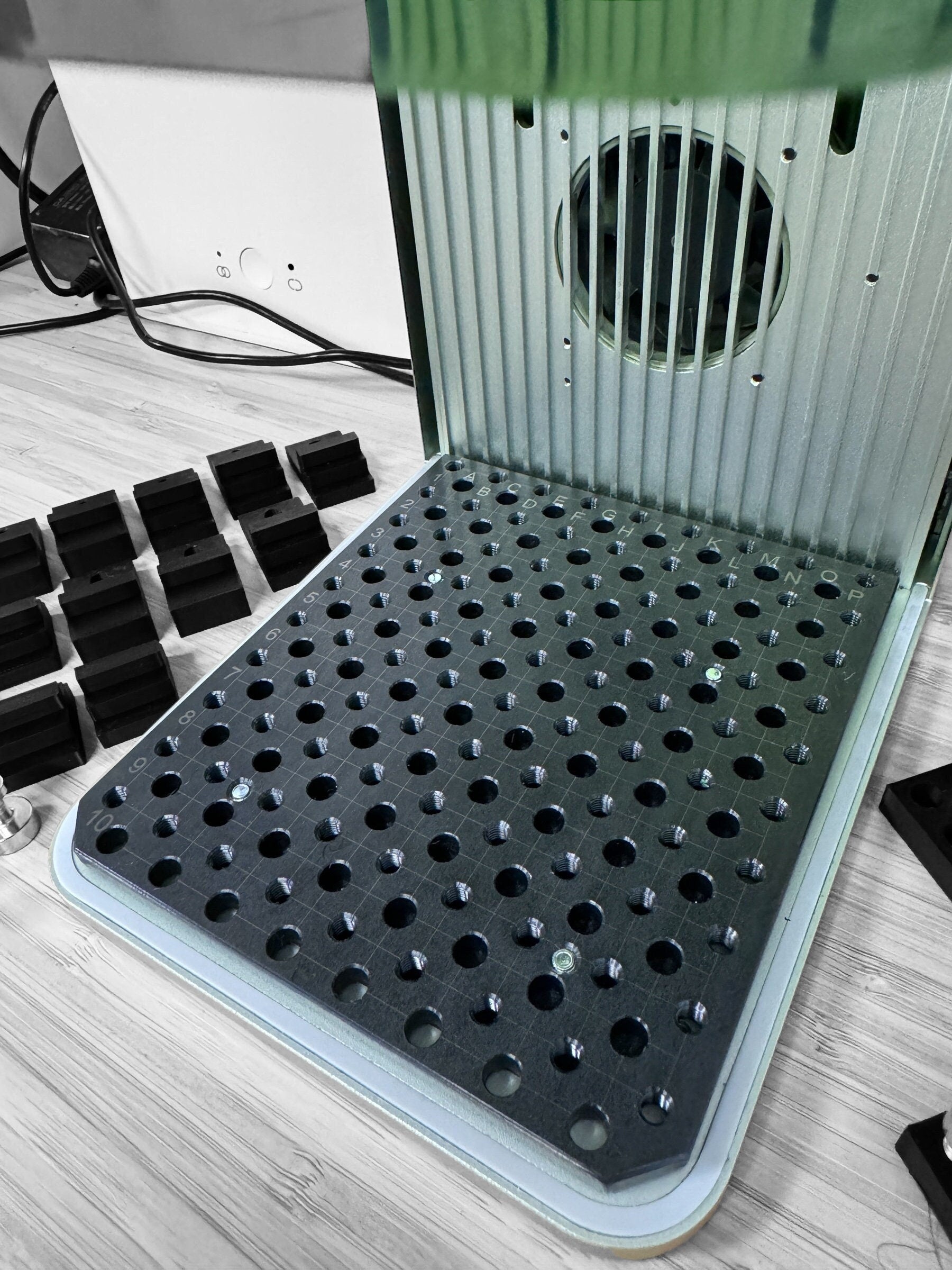 Robuste Stahlbasisplatte: Langlebig mit beidseitigem Koordinatensystem für präzise Reproduzierbarkeit.